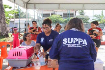 Tutores levam animais para serem atendidos em ação da SUPPA, em Lauro de Freitas