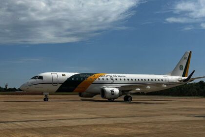 A aeronave VC2 (Embraer 190) da Presidência da República pousou em Brasília,…