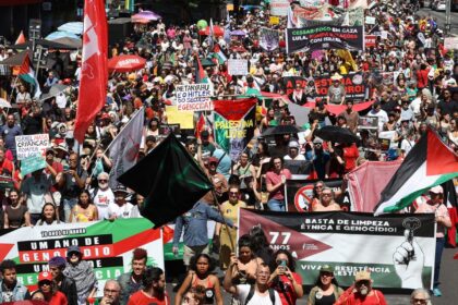 Em mais um ato pró-palestina no centro de São Paulo, alguns milhares…