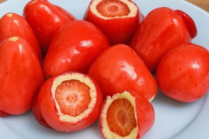 Popular nas redes sociais como “morango do amor”, o bombom de morango…
