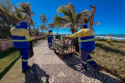 Prefeitura realiza limpeza no calçadão entre as praias de Vilas do Atlântico e Buraquinho