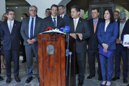 Ao lado de ministros, Alcolumbre promete colaboração com o governo