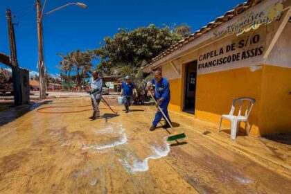 Mutirão de limpeza prepara Praia de Buraquinho para Festa de Iemanjá