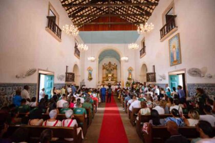 Durante missa solene, fiéis celebram o padroeiro de Lauro de Freitas