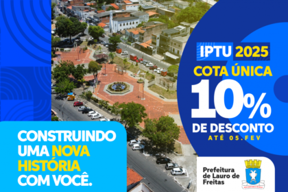 Contribuintes de Lauro de Freitas têm até o dia 5 de fevereiro para pagar o IPTU com desconto