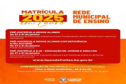 Prefeitura de Lauro de Freitas divulga cronograma de matrícula da rede municipal para o ano letivo de 2025