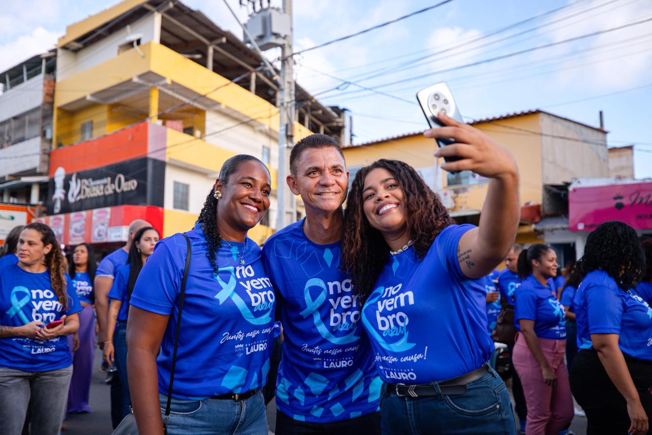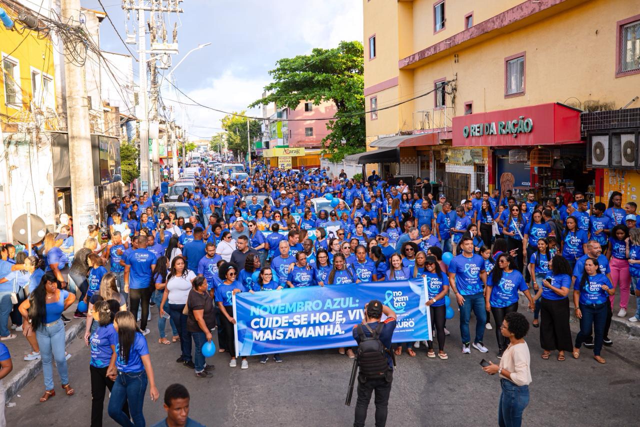 À tarde desta sexta-feira (14/11) foi marcada por conscientização, alegria e muita informação durante a Caminhada do Novembro Azul, realizada em alusão ao combate ao câncer de próstata. A ação teve início no final de linha do Centro de Lauro de Freitas e seguiu até a Praça João Tiago dos Santos, conhecida como Praça da Matriz, reunindo dezenas de homens que, aderiu à vestimenta na cor azul, abraçaram a causa e reforçaram a importância do cuidado com a saúde.