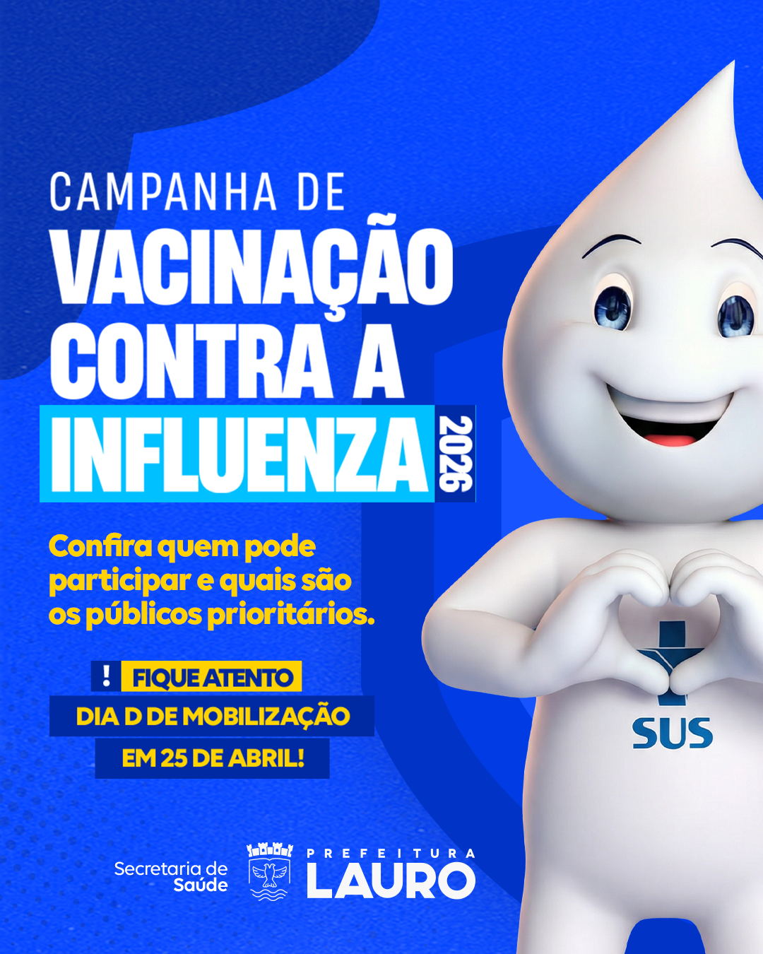 Neste sábado, a campanha está direcionada aos grupos prioritários, incluindo crianças de 6 meses a menores de 6 anos (5 anos, 11 meses e 29 dias), idosos, gestantes, puérperas, trabalhadores da saúde, pessoas com doenças crônicas e com deficiência permanente. Também integram o público-alvo pessoas em situação de rua, rodoviários, professores e profissionais das forças de segurança.