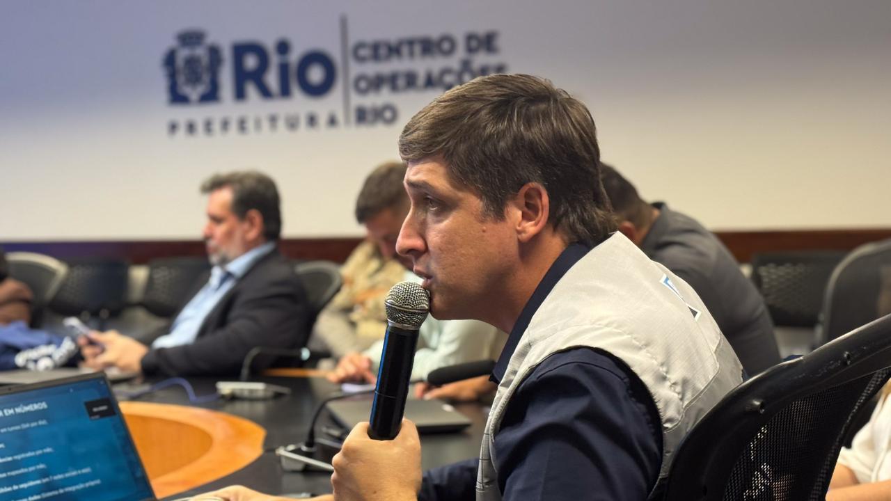 Durante o encontro, Tiago Curvello apresentou o funcionamento do COR-Rio, destacando as soluções tecnológicas e os processos integrados entre diferentes secretarias e órgãos públicos, que garantem agilidade e eficiência na tomada de decisões em situações de risco ou de grande impacto urbano.
