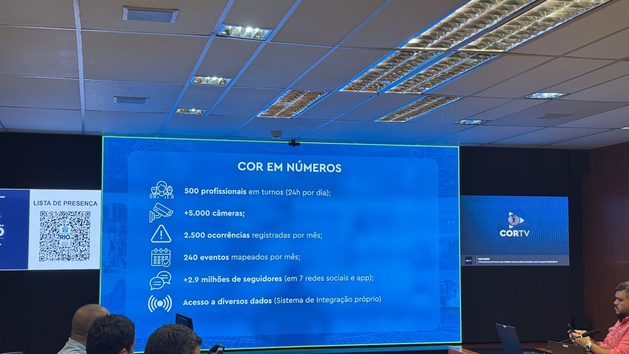 O COR-Rio é considerado o principal centro de inteligência urbana da América Latina, reunindo cerca de 500 profissionais de mais de 50 órgãos e concessionárias de serviços públicos que atuam 24 horas por dia. O espaço conta com aproximadamente 5 mil câmeras, controle semafórico, sensores georreferenciados e mapeamento médio de 240 eventos por mês, permitindo monitorar a cidade em tempo real e integrar ações de planejamento e resposta a emergências.
