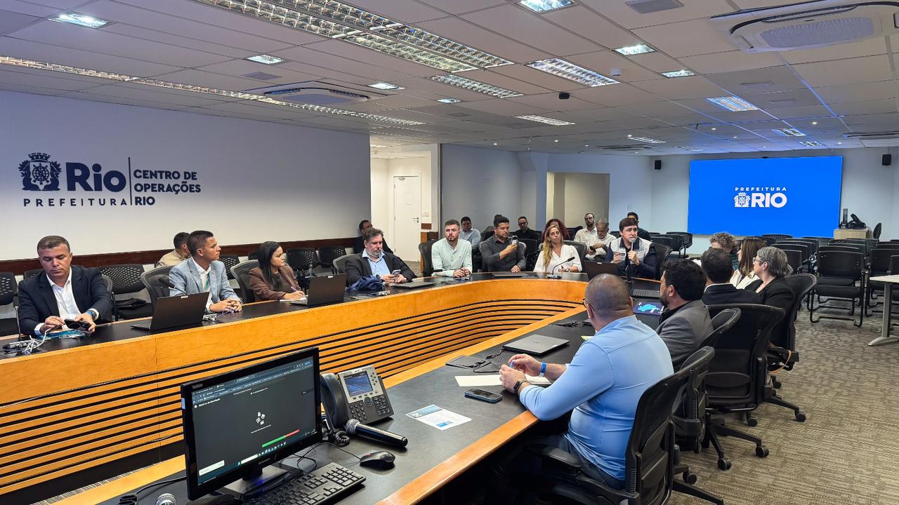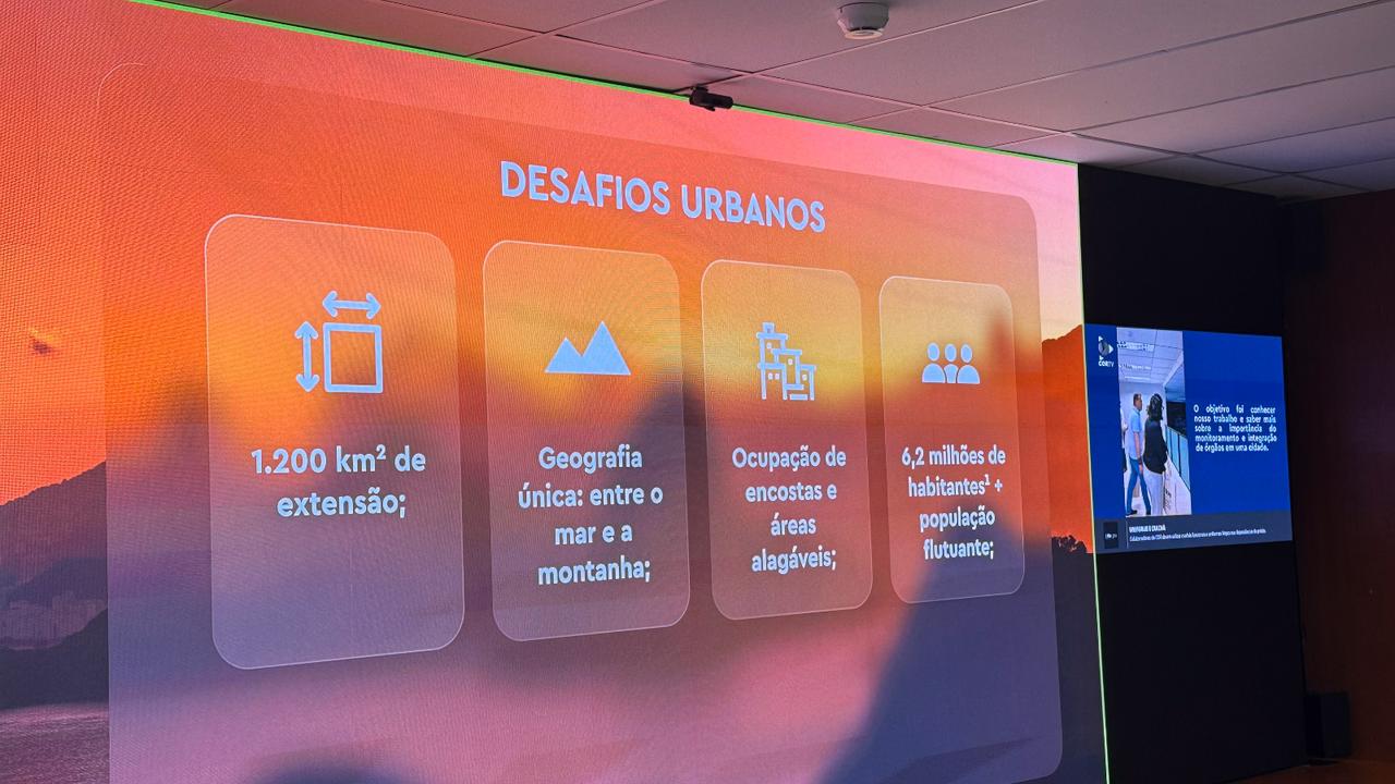 Durante o encontro, Tiago Curvello apresentou o funcionamento do COR-Rio, destacando as soluções tecnológicas e os processos integrados entre diferentes secretarias e órgãos públicos, que garantem agilidade e eficiência na tomada de decisões em situações de risco ou de grande impacto urbano.