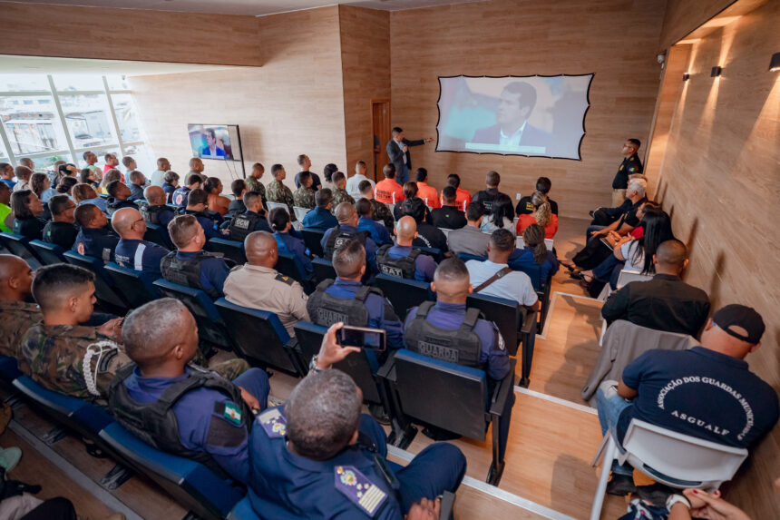 A atividade aconteceu no auditório do Colégio Perfil, em Vilas do Atlântico, e reuniu representantes de diversas forças de segurança do município e do Estado da Bahia, como o Corpo de Bombeiros Militar, o Batalhão de Choque, a Força Aérea Brasileira, o Grupamento Aéreo (GRAER), a Marinha do Brasil, além de equipes da Superintendência de Telecomunicações (STELECOM/SSP-BA), entre outros profissionais da área.