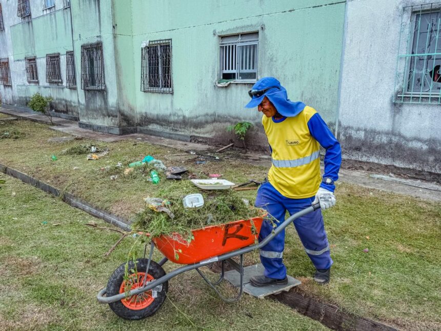 Durante o mutirão, as equipes executaram serviços de roçagem, capinação e varrição em diversas áreas dos conjuntos habitacionais. As atividades fazem parte do cronograma contínuo de zeladoria urbana desenvolvido pela gestão municipal, que busca manter os espaços públicos limpos, organizados e seguros.