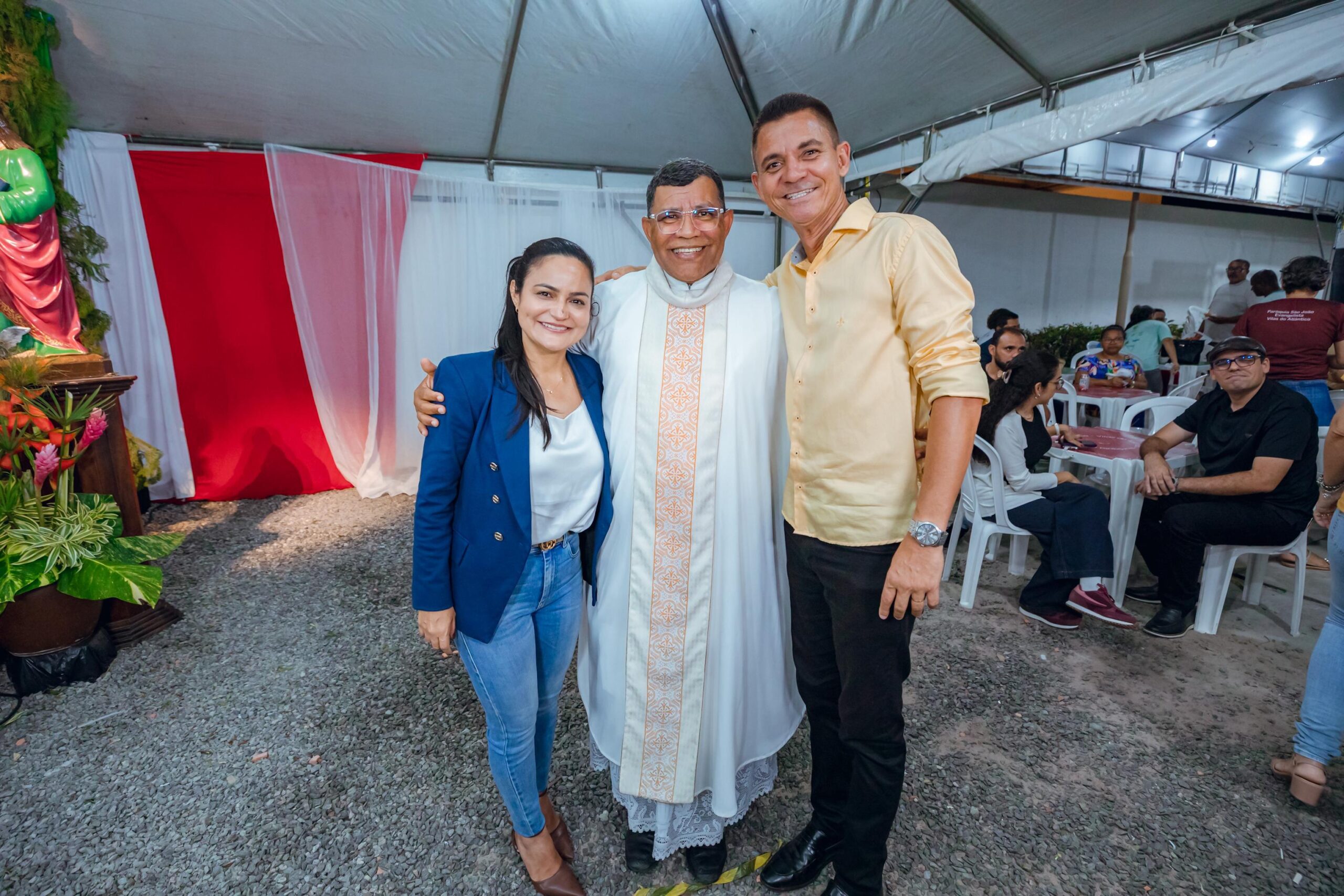 Em uma noite de muita fé e acolhimento, a Prefeitura de Lauro de Freitas foi homenageada durante a novena e festa do Padroeiro São João Evangelista, em Vilas do Atlântico. O evento, que aconteceu na noite desta sexta-feira (19/9), reuniu centenas de fiéis e contou também com a presença da prefeita Débora Regis.