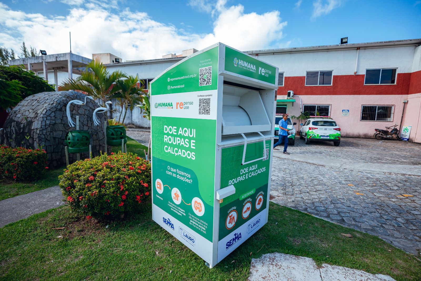 A Prefeitura de Lauro de Freitas, por meio da Secretaria Municipal de Meio Ambiente (SEMMA), em parceria com a organização Humana Brasil, implantou nesta quinta-feira (30/10) mais seis containers em diversos pontos da cidade para receber doações de roupas, calçados e acessórios usados. O primeiro coletor do projeto Repense Reuse foi instalado no Parque Ecológico de Vilas do Atlântico, totalizando sete pontos de arrecadação em funcionamento.