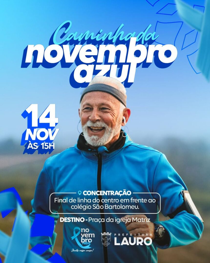 A Prefeitura de Lauro de Freitas, por meio da Secretaria Municipal de Saúde (SESA), promove a Caminhada do Novembro Azul pela Saúde do Homem, em alusão à campanha de combate e prevenção ao câncer de próstata, que acontecerá nesta sexta-feira (14/11), a partir das 15h. A concentração será no final de linha do Centro de Lauro de Freitas, com destino à Praça do Índio (Pé de Oiti).