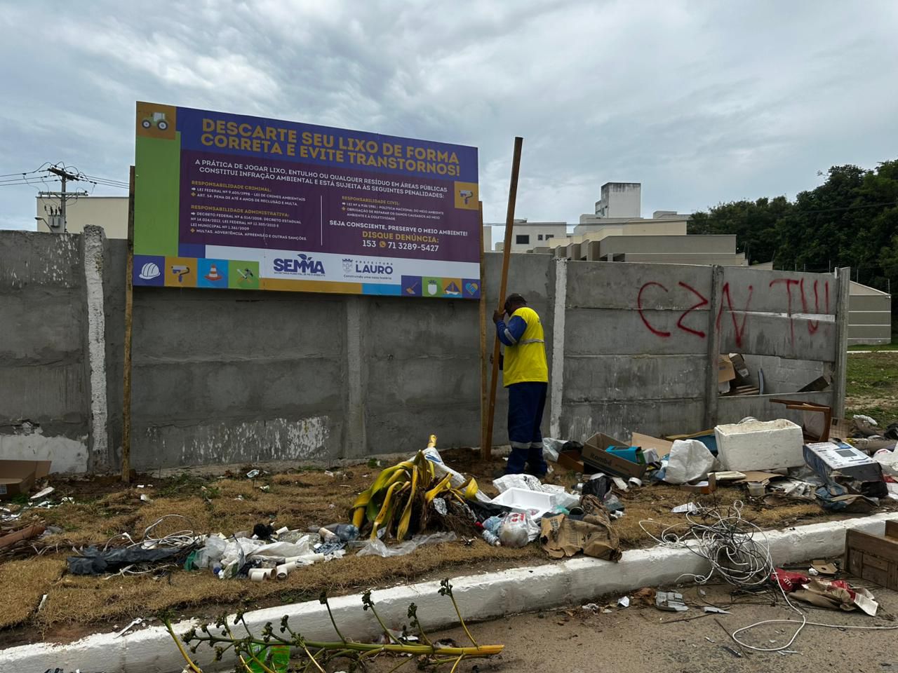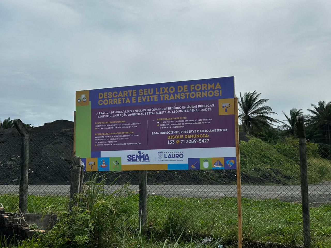 A Prefeitura de Lauro de Freitas iniciou, na manhã desta terça-feira (11/11), a instalação de 30 placas educativas para alertar a comunidade sobre o descarte irregular de resíduos em áreas públicas do município. Nesta primeira etapa, a ação tem como objetivo informar e conscientizar a população sobre a importância do descarte adequado de lixo e entulho.