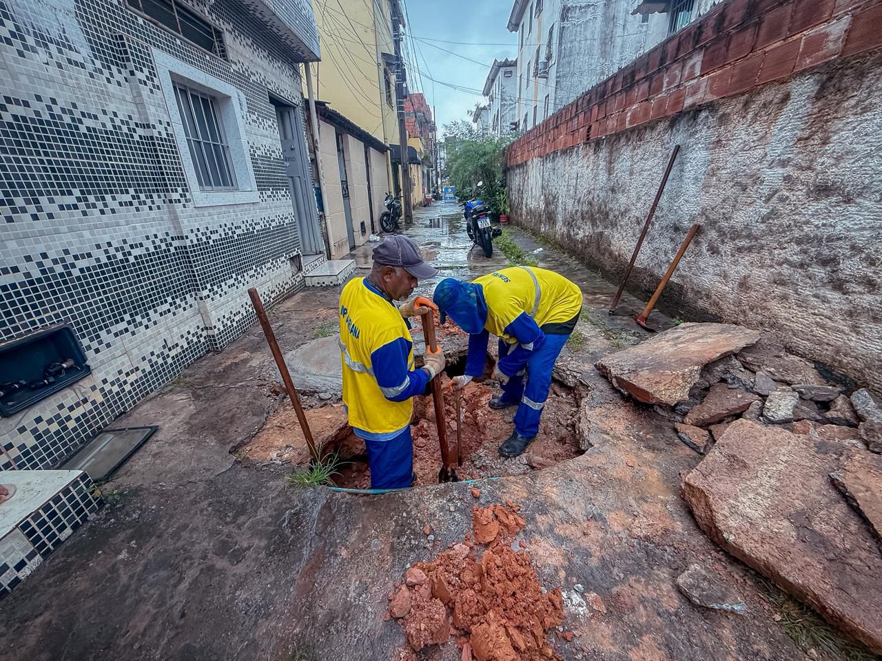 Os profissionais também estiveram na Avenida Santos Dumont, mais conhecida como Estrada do Coco, realizando a limpeza de caixas coletoras em vários pontos críticos que costumavam alagar com frequência, evitando o acúmulo de água e os transtornos à população.