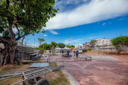 Montagem das estruturas para a Paixão de Cristo da Bahia, em Lauro…